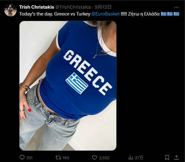 这次欧洲杯,她全程关注希腊队,半决赛还晒出了应援图片。